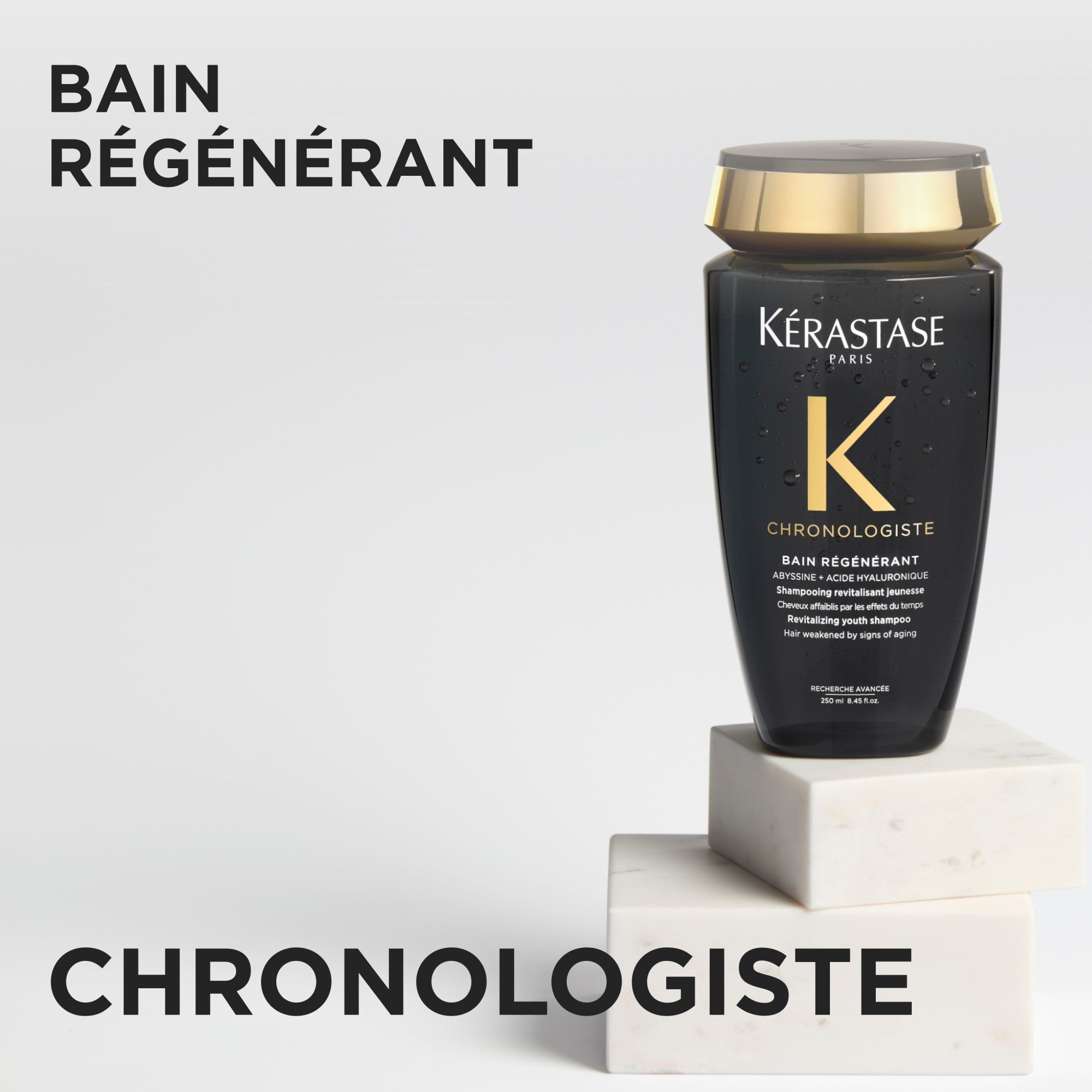 Renseignements : Un shampoing revitalisant jeunesse éliminant les impuretés en douceur du cuir chevelu et des fibres. Il est enrichi d’acide hyaluronique, d’abyssine et de vitamine E pour lutter contre les signes du vieillissement du cuir chevelu et des cheveux. Il fournit une hydratation de longue durée au cuir chevelu et accroît l’humidité, la brillance et la vigueur des fibres pour faire retrouver un rebond voluptueux de jeunesse. L’odeur Chronologiste se distingue par de fines notes parfumées, notamment de thé rose, de bois légers et de musc. Bain régénérant fait vivre une luxueuse expérience sensorielle.